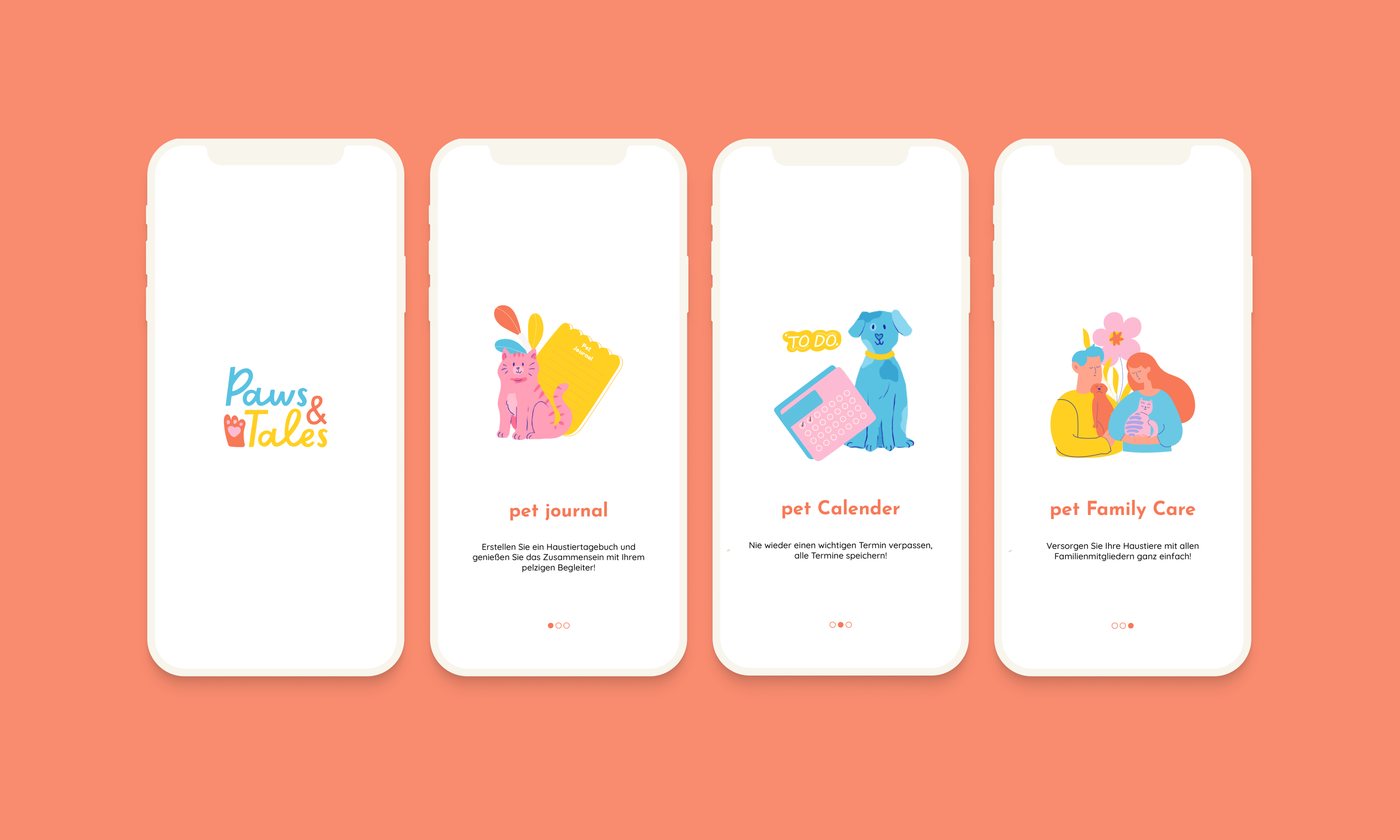 "Paws and Tales" is a university project that I completed with three other classmates. The objective of this project is to aid households in pet care and is designed for multiple users. Frequently, individuals within a household find it challenging to coordinate their efforts in caring for their pets. The "Paws and Tales" app is designed to assist people in achieving better coordination in pet care.